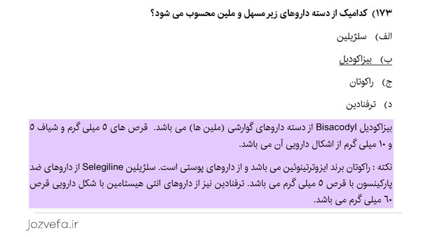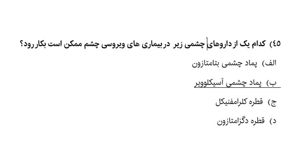 پبش نیاز نمونه سوالات آزمون نسخه خوانی
